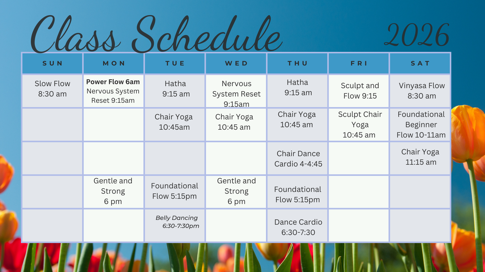 We offer a variety of yoga styles to suit different needs and preferences, including Hatha, Vinyasa, Yin, Restorative, Adaptive/ChairYoga, Meditation, Family/Kids, Movement classes and more!